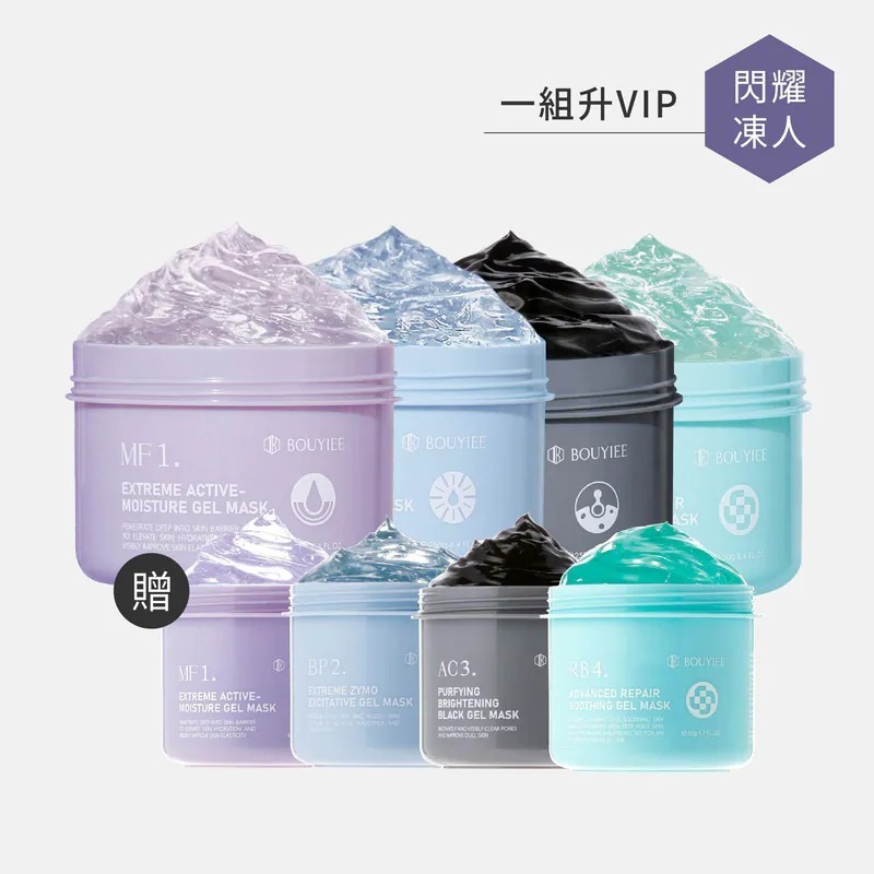 不知道怎麼選,會推薦這組「閃耀凍人組」,四罐大罐再送四罐小罐凍膜~四種凍膜都有了!可以很精準依照不同膚況來調理。但就是記得如果有使用折扣要再湊滿NT$3,000才會達升等門檻。