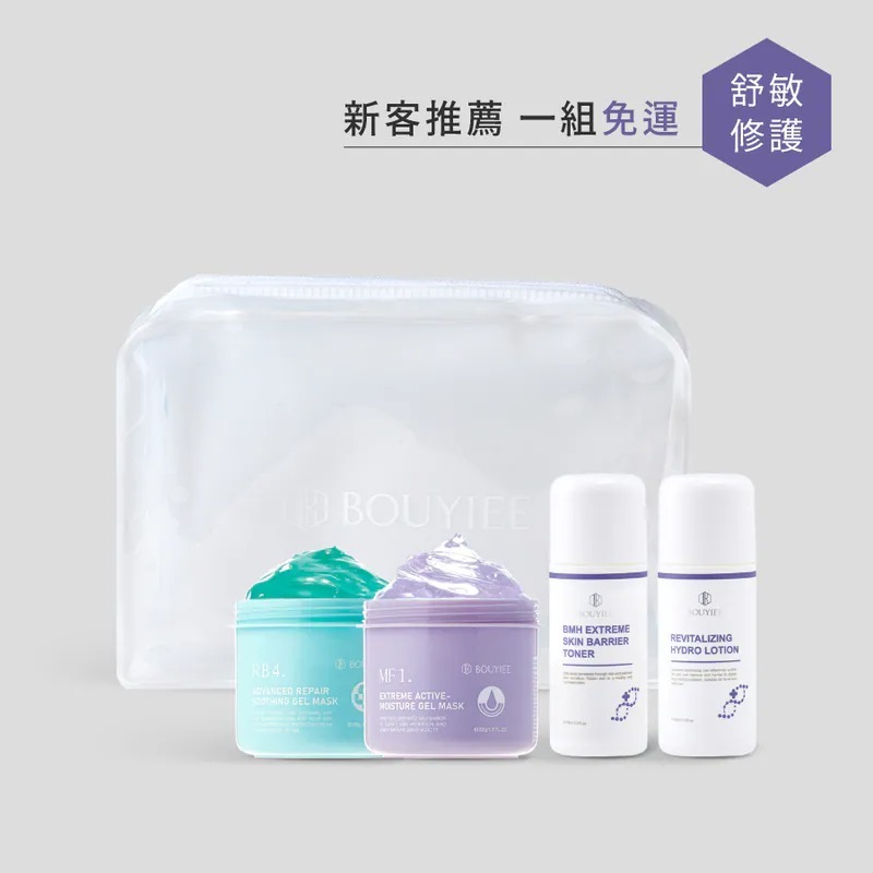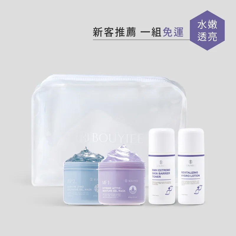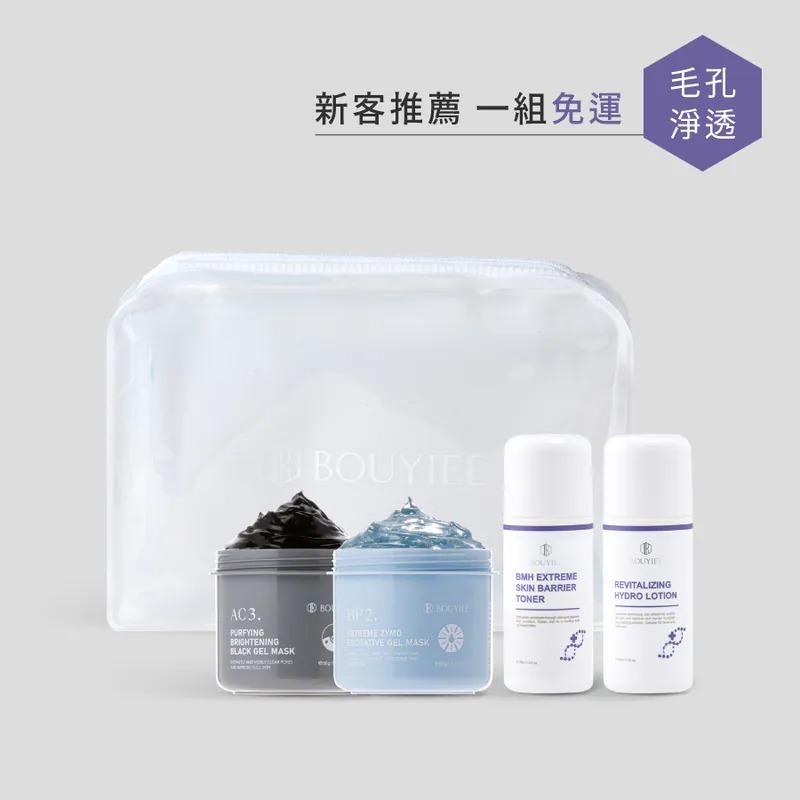除此了這兩組禮盒組以外,還有針對各種膚質設計的小體驗組,而且更便宜!還有附贈一個BOUYIEE品牌訂製果凍袋,外出攜帶超方便: