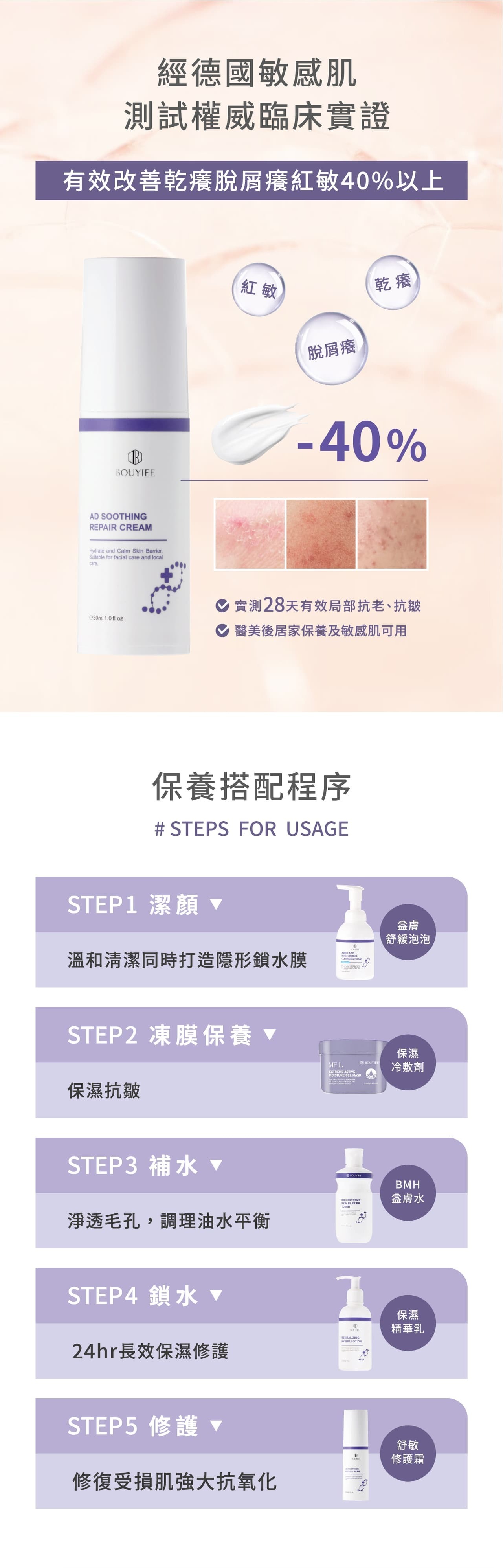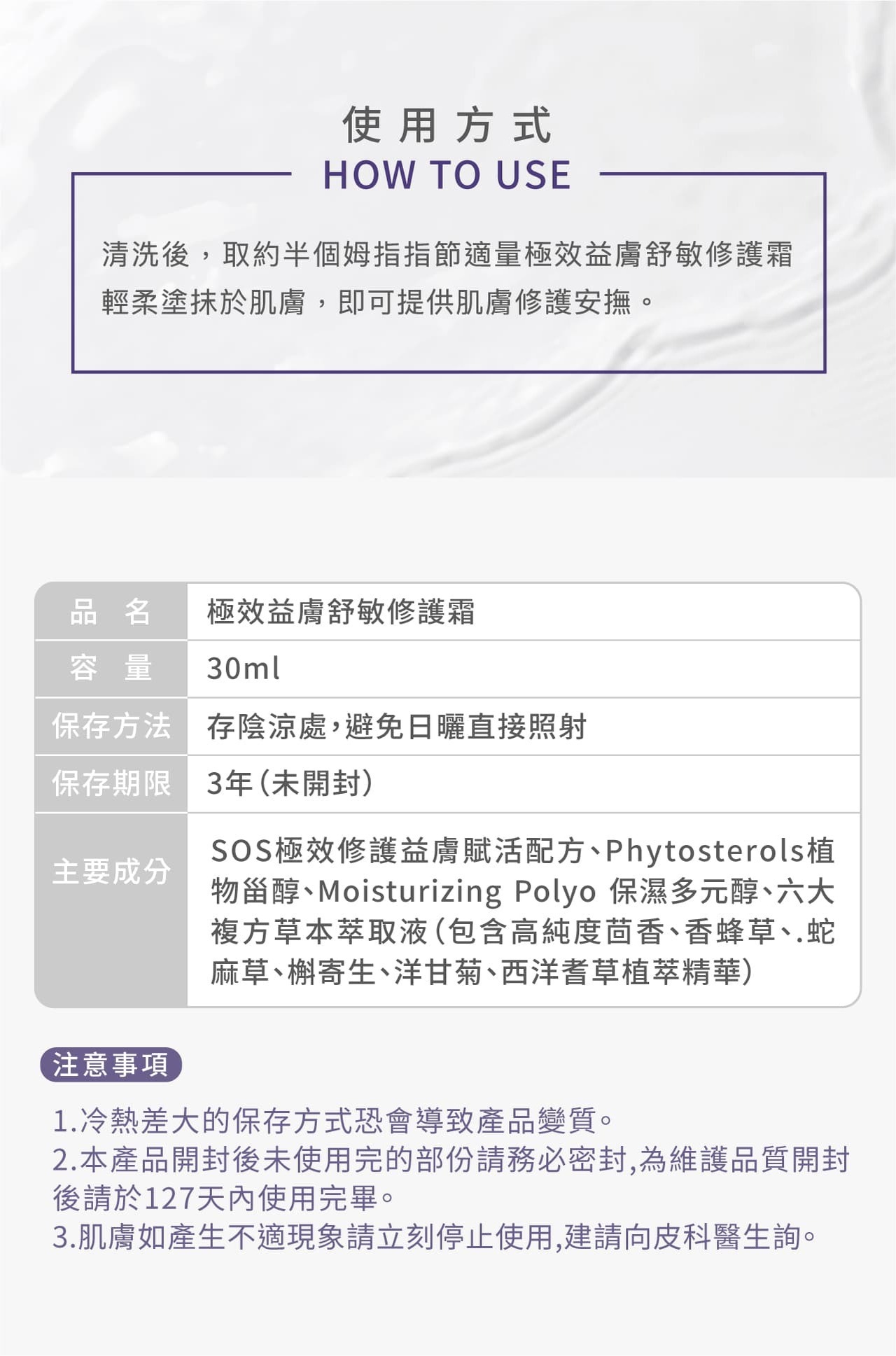 • SOS極效修護益膚賦活配方,快速舒緩不適