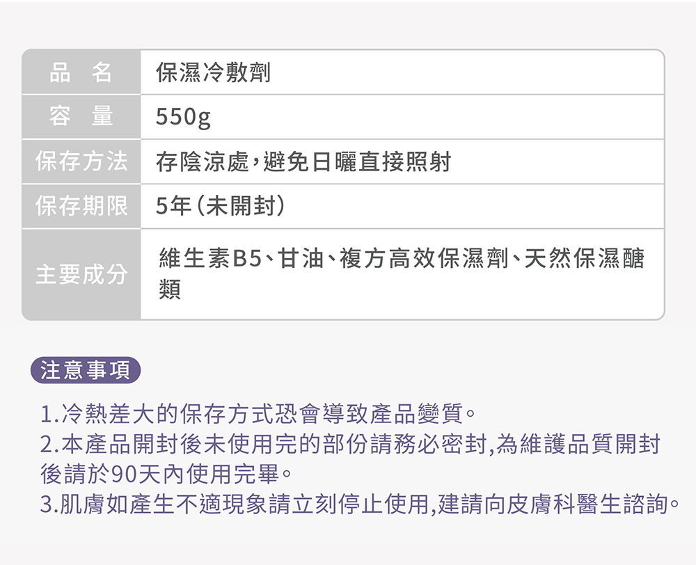 • 經典保濕冷敷劑(紫)牢牢鎖住水分