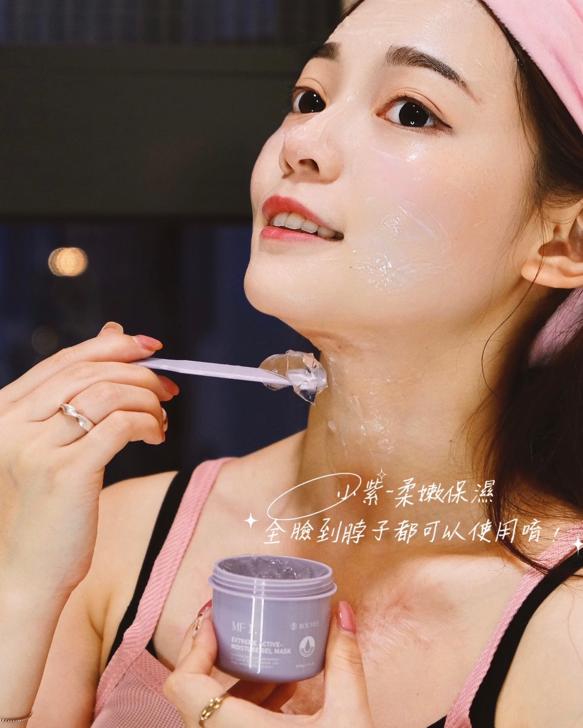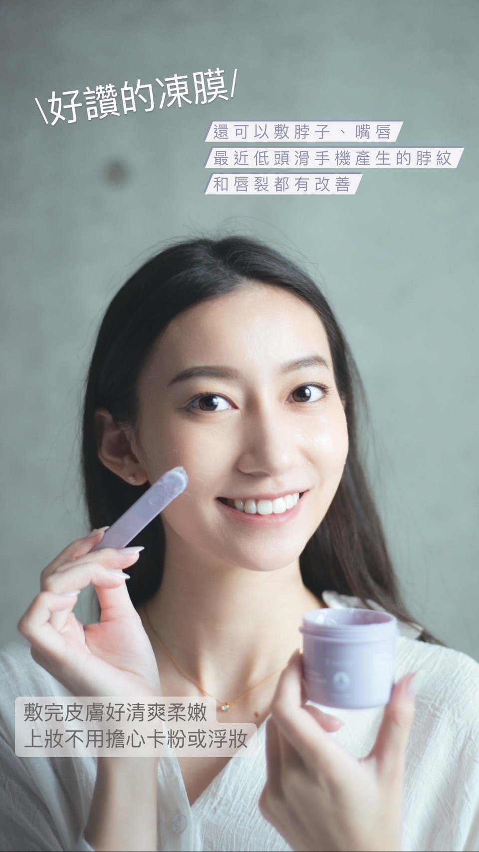 紫凍膜針對暗沉細紋,粗糙敏弱, 而且不只有可以敷臉,唇部頸部都能夠加強保養! 我自己很有感敷完臉真的很柔嫩,摸起來很古溜~
