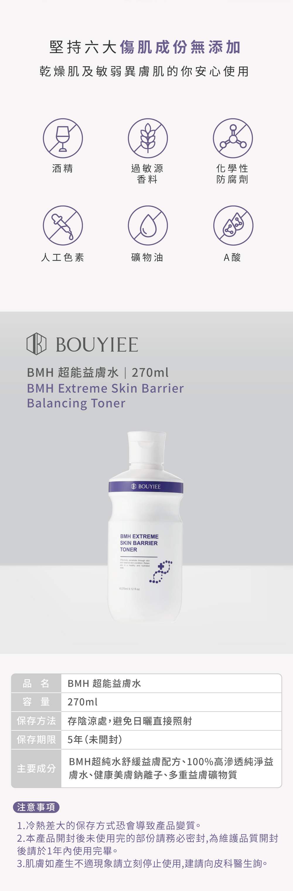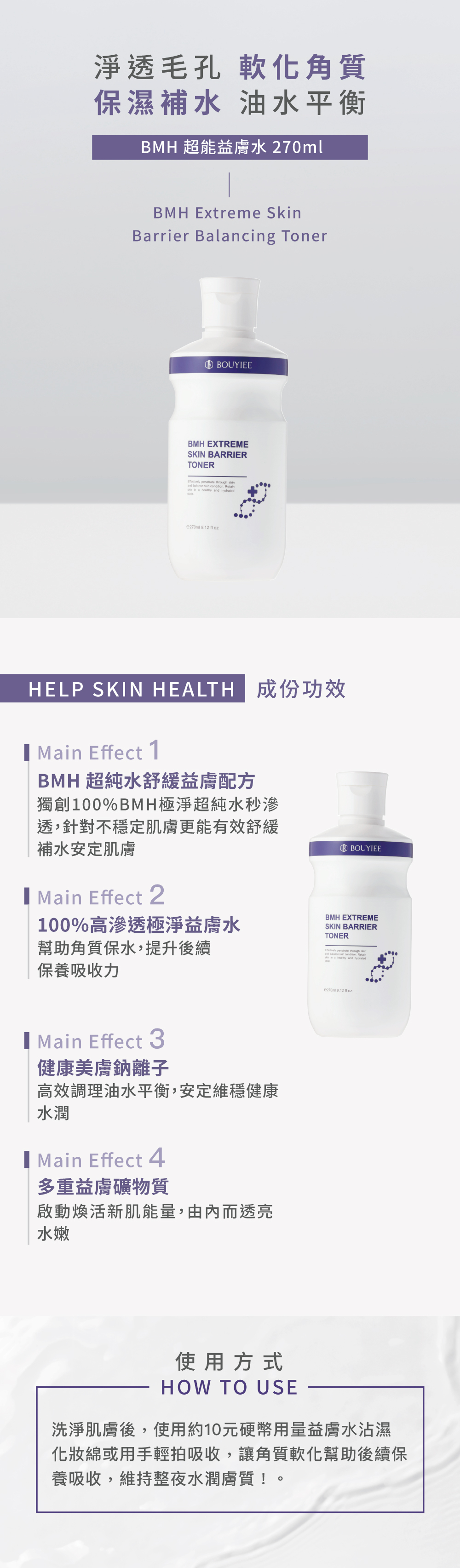• BMH超純水舒緩益膚配方高效滲透,迅速直達肌底